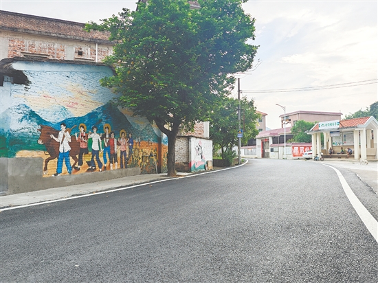 当天,记者走访蟠光村并体验了一趟徒步新村道,新铺设的沥青村道平整宽阔,与各具特色的墙绘及周边的绿化相映成趣,共同勾勒出美丽乡村景象,村民骑着电动自行车在平整宽阔的村道上来来往往,为村庄增添了蓬勃生机。