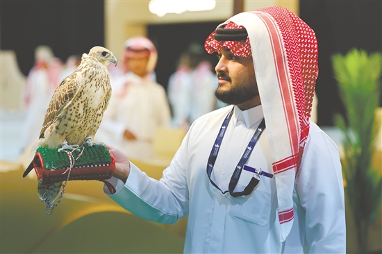 2025年沙特国际猎鹰与狩猎文化展10月2日在利雅得开幕,来自45个国家的1300多家参展商和品牌参展,展览将持续至10月11日。今年“猎鹰节”的一大亮点是专门设立了中国展区,共有50多家中国公司参与,展示了先进的沙漠农业解决方案、现代狩猎和露营装备、无人机、活动板房、照明系统等产品,还有中国品牌越野汽车参展。图为10月6日,在沙特阿拉伯首都利雅得,沙特游客体验和鹰隼合影互动。 新华社发