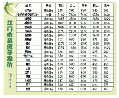 江门市菜篮子报价(10月9日)