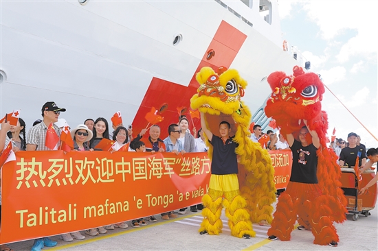 10时许,在汤加海军巡逻艇引导下,“丝路方舟”号医院船悬挂中汤两国国旗,缓缓驶抵努库阿洛法港。汤加代理首相福希马洛西及军政要员、中国驻汤加大使和当地民众、华侨华人及中资机构代表等在码头迎接。汤加军乐队演奏中汤两国国歌,身着传统服饰的当地民众向中国海军官兵献上花环,表演民族舞蹈。