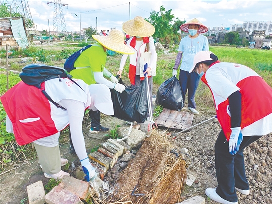 在幕沙社区轩汇豪庭小区,广州松田职业学院的党员志愿者甄泽彬和伙伴们弯腰捡拾垃圾,徒手拔除杂草,细致排查每一个可能的蚊虫孳生地。“看到社区变得越来越干净,心里非常自豪。”甄泽彬说,“未来,只要家乡有需要,我会始终以党员身份冲在前。”