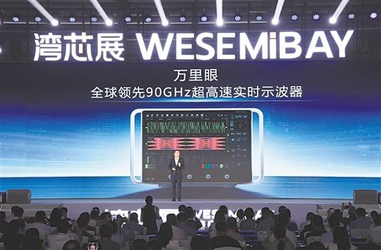 新华社深圳10月15日电 15日于深圳举行的2025湾区半导体产业生态博览会(湾芯展)上,我国自主研发的新一代超高速实时示波器正式发布,其带宽突破90GHz、达到国际先进水平,这标志着全球电子通信产业迎来超高速信号“中国标尺”。