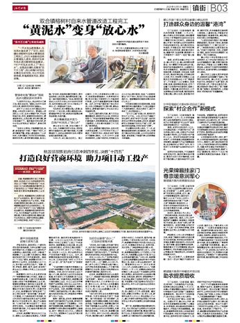 “一开水龙头就是清水,生活用水踏实多了!”近日,双合镇合成榕树村自来水管道改造工程完工,2520米崭新的自来水管道投入使用,困扰村民多年的水质问题得到彻底解决,118户村民从此用上了“放心水”。这是双合镇扎实推进“百千万工程”、用心用情办好民生实事的生动写照,也让村民的获得感、幸福感更加充实、更加保障。