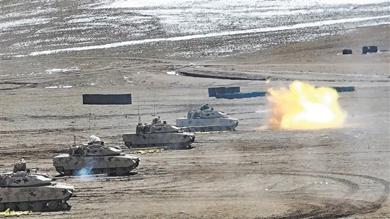 图为1月6日,西藏军区某部坦克分队按编组进行实弹射击考核。