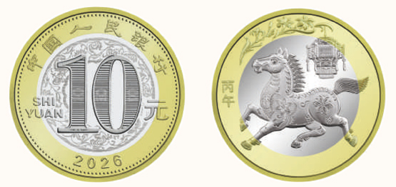 据央行公告,马年贺岁纪念币材质为双色铜合金,面额10元,正面为面额和年份,背面以剪纸风格马形象为主,辅以花灯和萱草图案,左侧刊“丙午”字样,发行数量为1亿枚;纪念钞面额20元,正面为马造型主景,背面描绘儿童欢庆锣鼓场景,发行数量为1亿张。