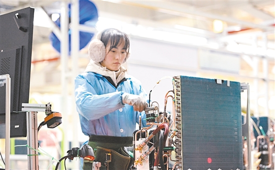 图为1月29日,在江苏省南京江宁高新技术产业开发区,工人在格力电器(南京)有限公司生产线上忙碌。新华社发