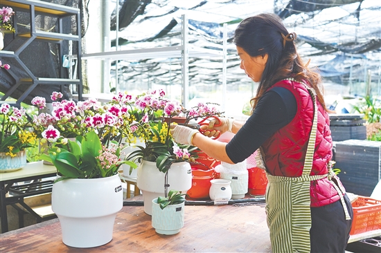 据悉,址山镇云乡片区共有18户兰花种植户,当地兰花种植基地培育了文心兰、梦香兰、石斛兰、墨兰、蕙兰等品种,品类丰富、特色鲜明,满足春节期间市民的家居装饰和节日馈赠等不同需求。近年来,兰花种植已发展成为址山镇的特色产业。兰花种植基地通过规模化、标准化的种植方式,不仅带动了村民就业,还为周边农户提供技术示范,带来了可观的经济效益和良好的生态价值。