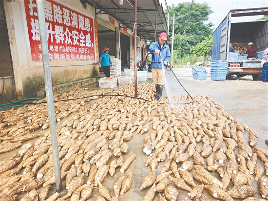 “‘鹤山粉葛’因其较好的品质和独特风味口感受到消费者的喜爱,这是鹤山发展粉葛产业的重要基础。然而,粉葛的生长周期较长,‘藏葛’成本较高,多数种植户选择以鲜葛批发形式直销江门。这种方式虽有价格稳定、产销有保障的优势,却难以支撑产业可持续发展。因此,必须延伸产业链条。”共和镇党委委员黎明说。