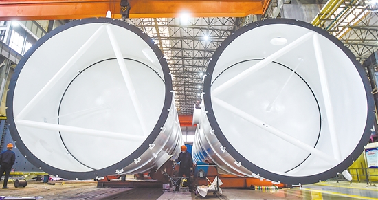 新春开年,各地企业纷纷按下复工复产“快进键”,车间内机器轰鸣、生产线全速运转,为全年经济发展夯实起步根基。图为2月25日,在位于河南省洛阳市涧西区的中信重工生产车间内,工人在装配应用于煤炭清洁高效利用的煤化工罐体装备产品。 新华社发