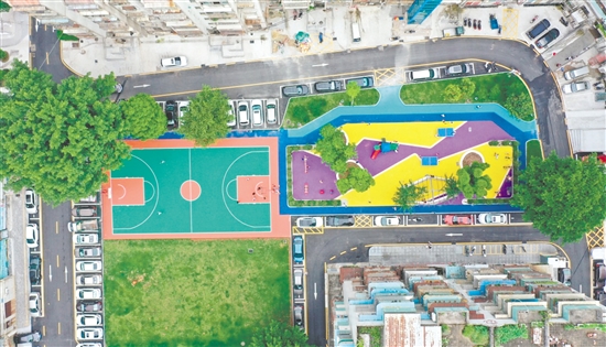 走进丽苑社区,7000多平方米的休闲健身广场已成为居民休闲娱乐的场所,孩童追逐嬉戏,邻里围坐话家常。很难想象,这里曾是一片坑洼的闲置地。