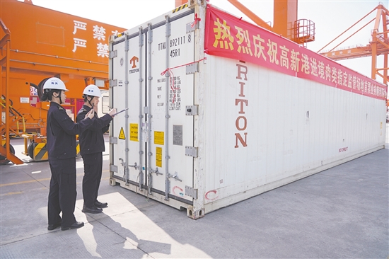 “从货物抵港到完成查验,流程非常顺畅。”首票业务进口商、恩平市云合贸易进出口有限公司总经理马小红表示,过去进口猪肉需从广州南沙、深圳盐田等口岸入境,江门高新港进境肉类指定监管场地启用后,如今货物经香港转运后,可以直接在江门“直提上岸”,清关完成后即可运往本地冷库,再销往全国。“提货速度快了整整一天,在家门口有了冷库,也省去了异地仓储费用。”她表示,专业的冷链设施与高效的通关服务,有力保障了肉品品质,也为企业拓展业务增添了信心。