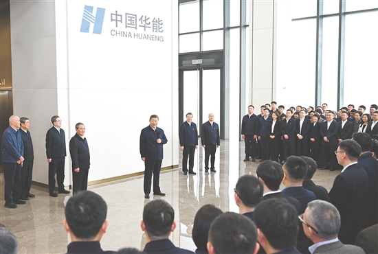 随后,习近平来到中国华能集团有限公司考察。2025年10月,华能集团总部及相关子公司1000多名员工迁驻雄安新区。习近平走进企业运营监控与应急指挥中心,听取企业搬迁、产业布局、创新发展等情况介绍,察看企业实时运营数据和远程图像。他强调,要以迁入雄安新区为契机,激发企业干部职工创新创业的积极性主动性,为加快建设新型能源体系、建设能源强国作出新贡献。