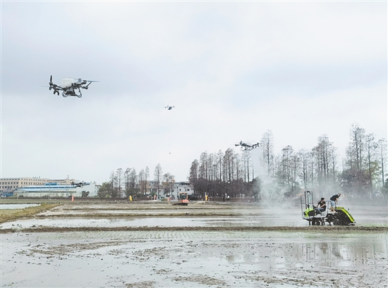 为做好春耕备耕工作,开平市农业农村局组织各镇(街)全面整治排灌渠道,加快农业项目建设,预计投入农机具2670台。在支农服务下乡活动现场,各类现代化农机装备大显身手。开平市永晖农机专业合作社联合社董事长陈小云介绍,中联乘坐式高速智能插秧机采用自动插秧技术,效率高、效果好;新款无人机可替代水稻种植过程中70%的人工工作量,能够完成播种、施肥、打药、除草等多项作业。