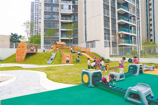 这所位于滨江新区华盛路的公办园,占地面积约4.6亩,可提供450个优质学位。去年10月开园,在园幼儿已超过250人。“家长带着幼儿踏入这间幼儿园,就是对我们的信任。”园长谢峰彩说,“我们要用优质的教育回报这份信任,打造大湾区高起点幼儿园。”