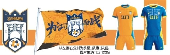 从左到右分别为队徽、队旗、队服。 图片来源:江门文旅