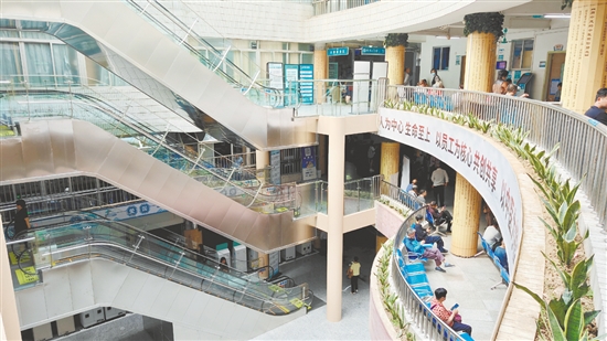 记者在医院门诊中庭看到,新增的门诊手扶电梯有序运行,有效分流原有两部垂直电梯的人流,显著缩短患者候梯与楼层间往返时间,大幅缓解就诊高峰期垂直运载压力。电梯采用防滑踏板、加固安全防跌落护栏等人性化设计,稳定性强、舒适度高。现场设置清晰导向标识与温馨提示,实行专人巡检维护,可以快速响应异常情况,全程守护患者通行安全。