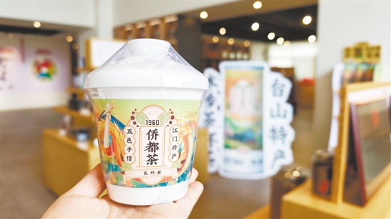 在潮熹食品的展示台上,一款名为“杯茶”的创新产品格外引人注目——外观是年轻化设计的纸杯,杯底用可食用纸膜包裹着茶叶,倒入热水即可冲泡,茶叶不会漂浮。该公司总经理蒋雄辉告诉记者,今年春茶季,他们用本地头春水步红茶制作了这批杯茶,外包装融入台山站、新宁铁路、冈宁圩、碉楼、草坪里等本土文化元素。近年来,该产品已成为当地热门伴手礼。“传统水步茶重视高火烘焙,有很香的焙火味。我们在保留传统的基础上通过技术革新去除了苦涩味,年轻人更喜欢。”蒋雄辉说。