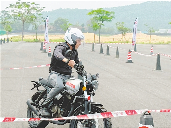 江门日报讯 (文/图 记者/任佳燕) “珠峰摩托车,赞!”来自意大利的客商Maximilian拧动油门、完成过弯,对新款大排量摩托车竖起大拇指。4月19日,江门蓬江摩托车试车场内引擎轰鸣,不同肤色、不同语言的外商齐聚于此。他们在广交会上被江门市珠峰摩托车有限公司的产品“圈粉”,便立马从广州驱车赶来,开启一场“沉浸式”的探厂、试驾之旅。