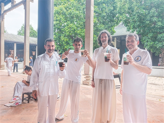 休息时间,弟子们在新会书院围坐一堂,品尝新会陈皮咖啡。醇厚的咖啡香融入陈皮独有的清新甘润,令远道而来的洋弟子们感到新奇。大家就着这杯“侨乡味道”,交流习武心得,感受江门“三点三”那份属于侨乡的悠然午后时光。小小的咖啡杯里,盛着的不仅是岭南风物,更是中西文化交融的温暖体现。