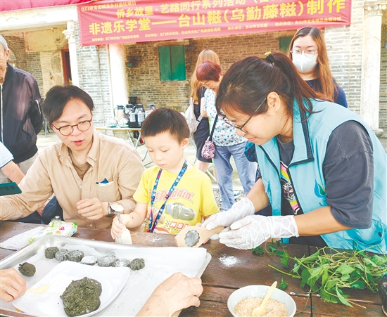 20多组亲子家庭参加了活动,在师傅的指导下体验制作乌勤藤糍,真实感受台山传统美食的制作乐趣与台山非遗技艺的文化底蕴。