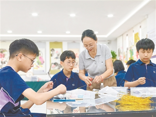 值得一提的是,该校将今年4月定为首个“校园非遗月”,通过“传承人进校园+校外研学”的模式,让学生在实践中触摸非遗、感知非遗、传承非遗,使传统文化在校园里“活”起来、传下去。